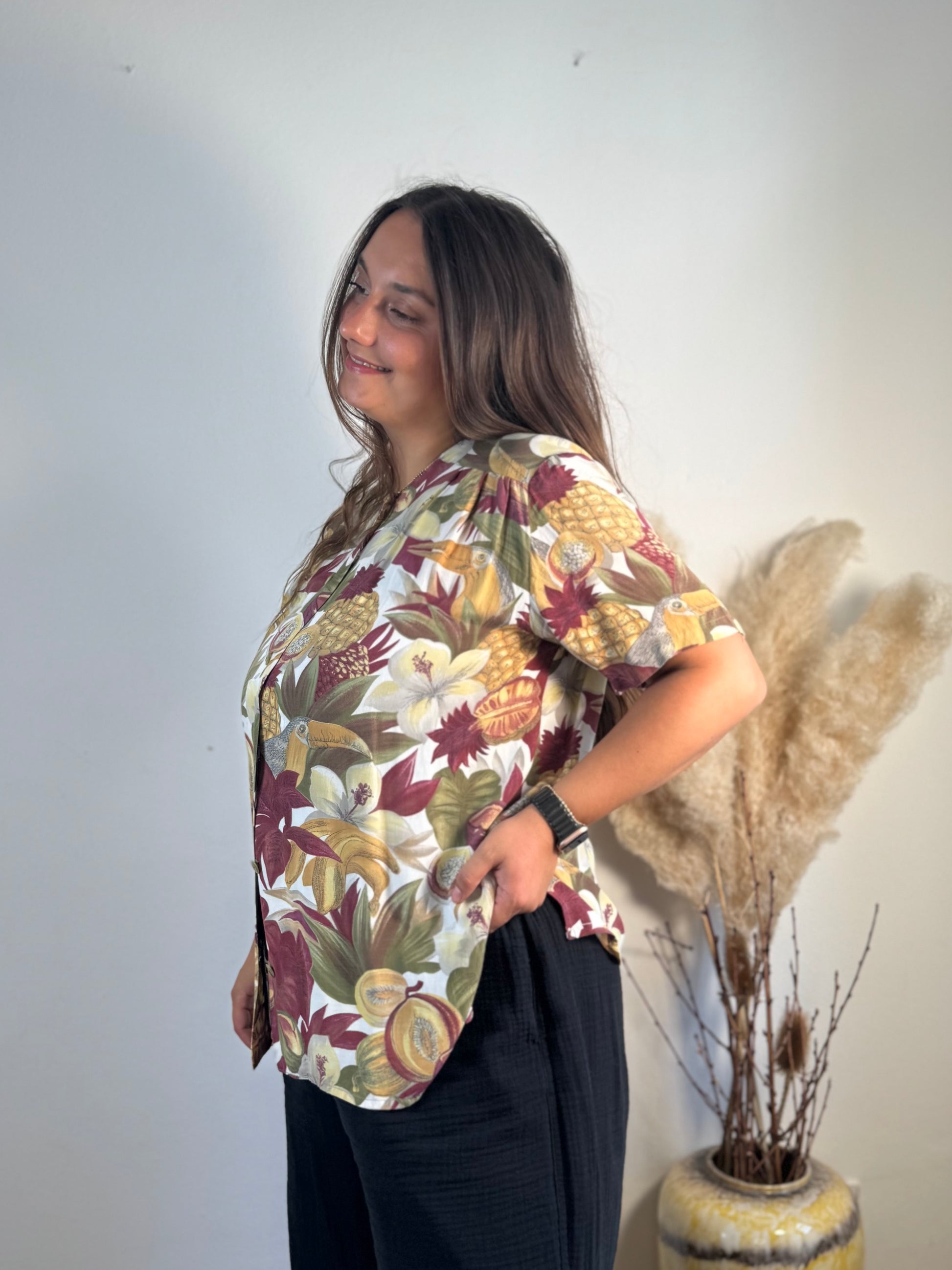 Diese kurzärmlige Bluse ist perfekt für den Sommer. Sie verleiht Ihnen einen frischen, sommerlichen Look und sorgt gleichzeitig für einen angenehmen Tragekomfort. Genießen Sie die warmen Tage in dieser luftigen Bluse und fühlen Sie sich gleichzeitig modisch und bequem gekleidet.