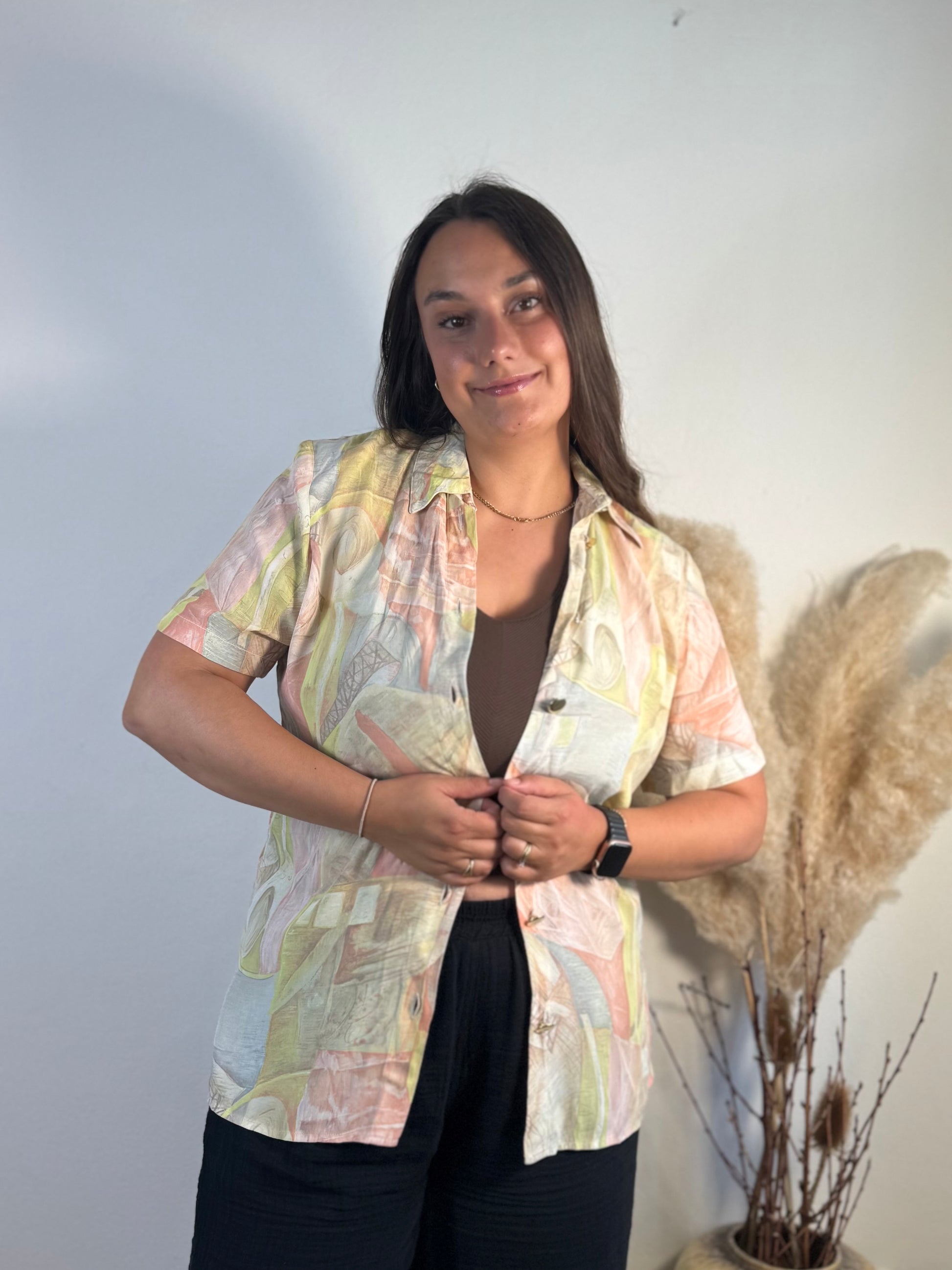Diese elegante Seidenbluse bietet nicht nur höchsten Tragekomfort, sondern auch ein luxuriöses Gefühl auf der Haut. Hergestellt aus reiner Seide, ist sie besonders leicht und atmungsaktiv. Perfekt für den besonderen Anlass oder um Ihrem Alltags-Look einen Hauch von Eleganz zu verleihen.